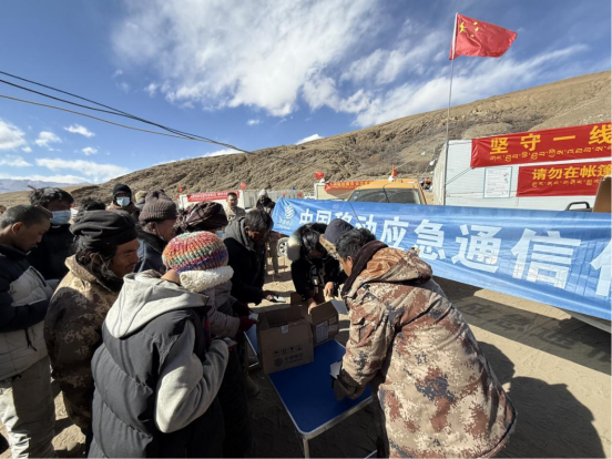 目前,地震灾区通信工作已从应急网络保障转为过渡安置期保障。中国移动坚持以人民为中心的发展思想,高效发挥“双千兆”宽带基础支撑和赋能作用,以信息化助力定日地震灾区灾后重建,于1月11日14时起,在定日县长所乡古荣村安置点搭建千兆网络点位,在工作人员20多个小时努力下,第一个千兆网络点位迅速建成,网络速率可达1000Mbps,通过全部采用光纤接入的组网方式,为广大群众和过渡安置工作人员提供了优质高速的移动宽带服务。此外,考虑到部分群众的手机在地震中损坏无法通信的情况,日喀则移动设立移动爱心服务点,免费为灾区群众发放350部手机、感冒灵、方便面、奶茶等物资,助力受灾群众积极应对。